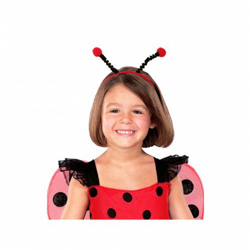 Čelenka s červenými tykadly pro berušku.Tykadla jsou připevněná na látkové čelence a lze je upravovat pomocí tvarovacích drátků.Univerzální velikost.