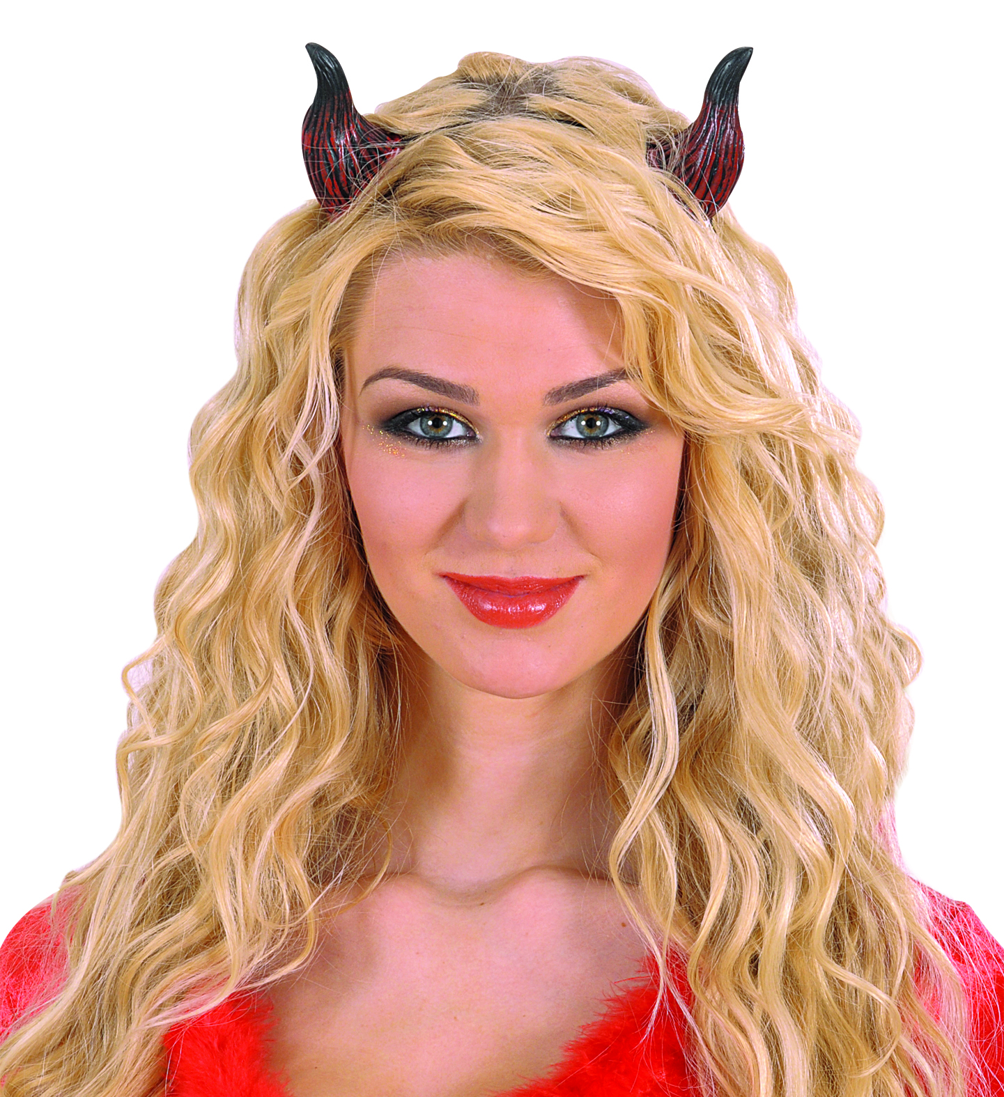 Čertovské rohy na gumičku, přirozený vzhled, červeno-černé. Čertovské rohy, které vypadají jako pravé.