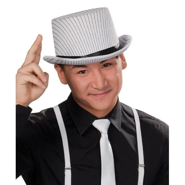 Klasický cylindr bílý s černým proužkem. Obvod cylindru je 60 cm
