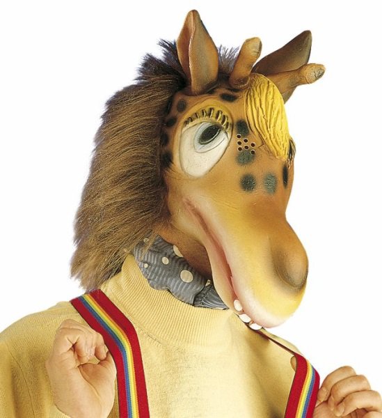 Latexová maska Žirafa s plyšovými vlasy.