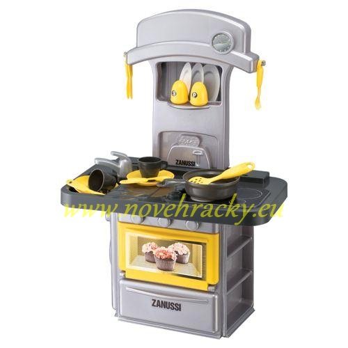 obsahuje sporák který má otevírací dvířka, varnou desku s číselníkem, pánev, varnou konvici, toustovač, talířky , příbory a mnoho dalších doplňků -celkem 16