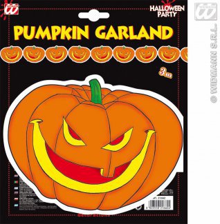Halloweenská girlanda v podobě dýní ze sortimentu italské společnosti Widmann je ozdobná dekorace pro večírky a oslavy památek zesnulých. Girlanda halloween dýně je ozdobná dekorace k zavěšení, která celkově dotvoří atmosféru halloweenu.