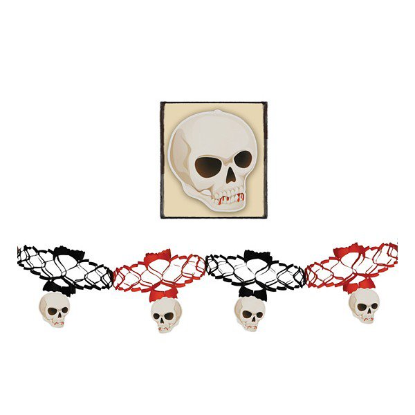 Halloweenská papírová girlanda s motivem lebek délka 200 cm.