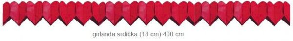 Girlanda srdíčka červená velká, 400x18,5x17cm
