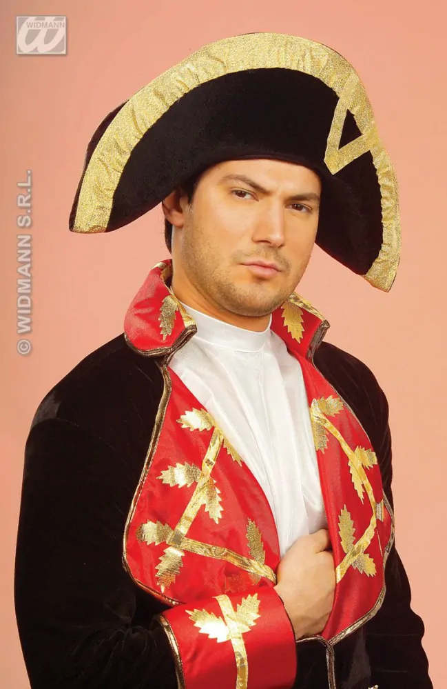 historický klobouk Napoleon - sametový se zlatým lemem