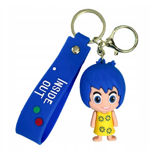 Senzační přívěsek na klíče , přívěsek s karabinou s figurkou emocí Radost a silikonovým páskem s nápisem Inside Out.