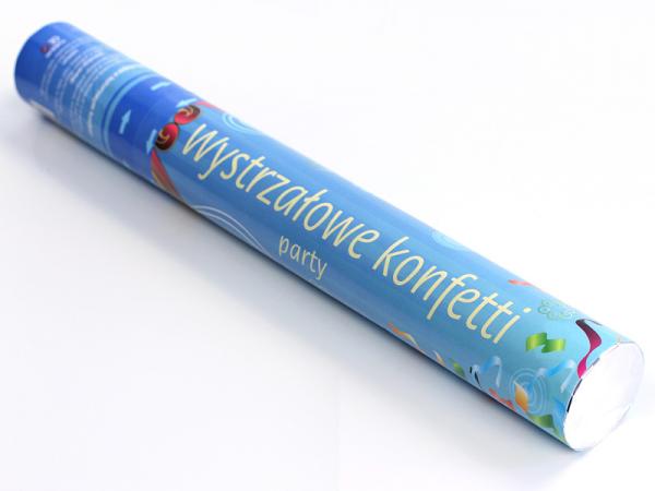 Konfetový kanon 40cm velký s konfetami "barevný mix". Výška výstřelu konfret je 5-7 metrů. Konfety neobsahují pyrotechnické části, výstřel probíhá za pomoci stlačeného vzduchu. Manipulace s výrobkem je určena pouze pro dospělé.