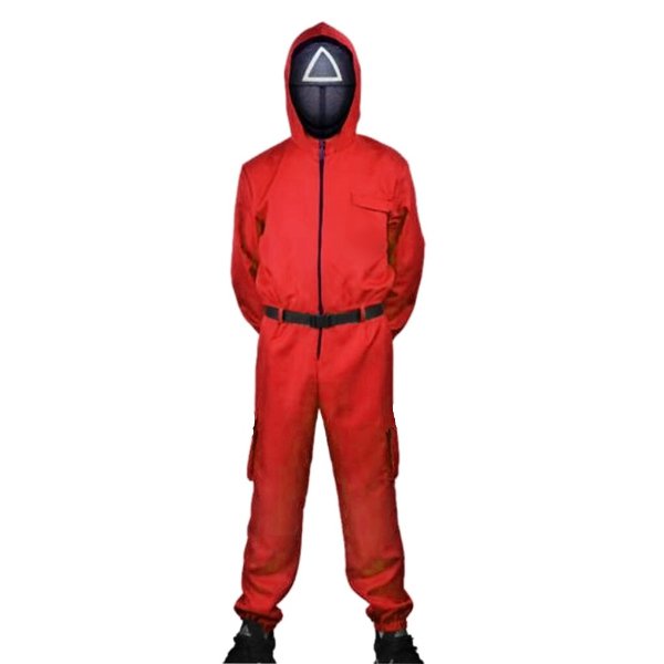 Tento dětský kostým je inspirován postavou dozorce z oblíbeného seriálu Squid Game - Hra na olieň.