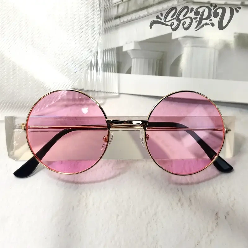 Lenonky - sluneční brýle růžová skla ,zlaté obroučky