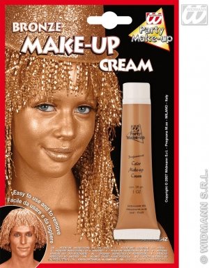 Make-up bronzový Make-up v tubě z dílny italské společnosti Widmann slouží k vybarvování větších ploch. Make-up je nejlépe nanášet houbičkou. Make-up se snadno nanáší i smývá. Využijete jej na karnevalových slavnostech, tématických akcích apod. Hmotnost make-upu je 28g.