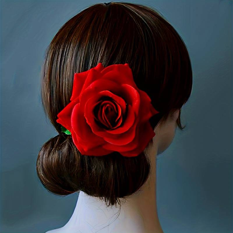 Elegantní Spona do vlasů s červenou růží – Dvouúčelová květinová brož. Stylový vlasový doplněk