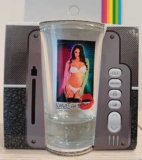 Skleněný panák standartních rozměrů, zdobený obrázkem spoře oděné ženy Po nalití tekutiny do panáku se však žena "vysvlékne" a Vy tak můžete obdivovat její vnady bez rušivého prádla. Svlékacího efektu je docíleno použitím speciální barvy, která při zahřátí nebo ochlazení mimo pokojovou teplotu jednoduše zprůsvitní. Výška štamprle: 9 cm, průměr cca 4 cm Objem: 0,025 litru.
