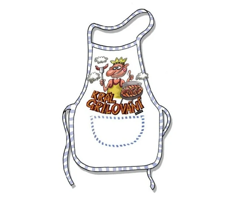Žertovná kuchařská zástěra s potiskem Král grilování, je vtipný dárek pro každého kuchaře na grilovací párty. Budete se cítít jako král na Vaší akci a budete nepřehlédnutelný.