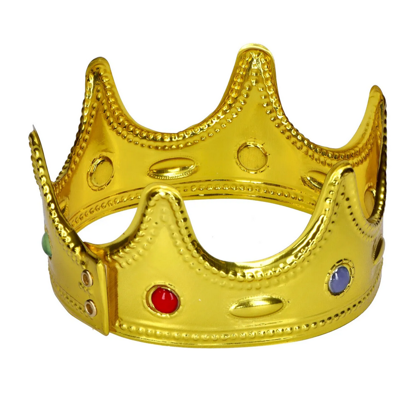 Zlatá královská koruna plastová,zdobená barevnými kamínky