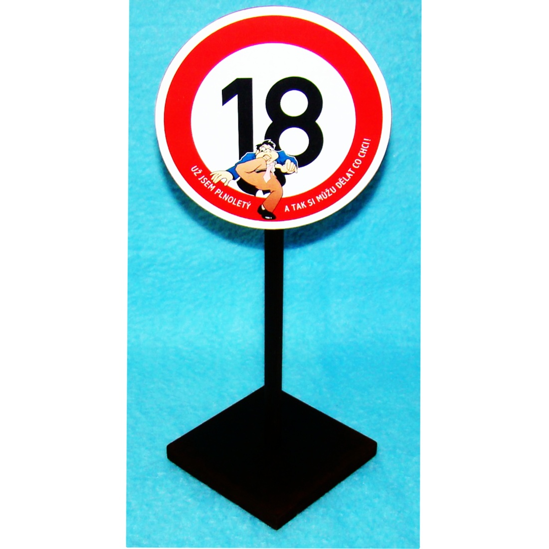 Dopravní značka jako dárek k narozeninám.