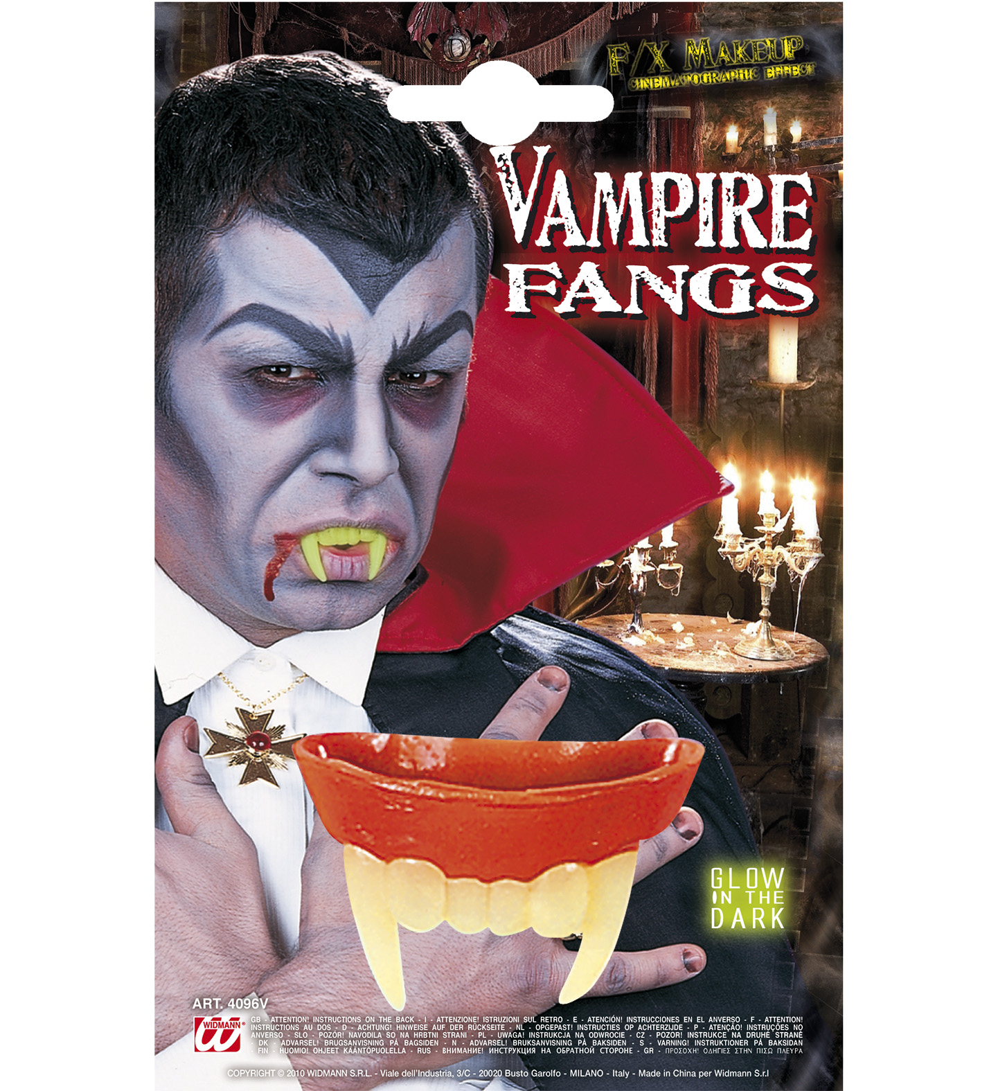 Zuby upíří Drákula jsou latexové nasazovací zuby pro dospělé od firmy Widmann